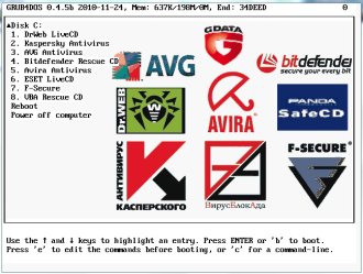 KasperskyRescue Disk 10 - Special program designed to scan and disinfectinfected x86 and x64-compatible computers. The program is used when theextent of infection, when it is not possible to cure your computer withantivirus programs or tools of treatment (eg, Kaspersky Virus RemovalTool), running under the operating system. The effectiveness oftreatment is enhanced by the fact that in the system are maliciousprograms do not get control at boot time. While disaster recovery isavailable only to the problem of testing facilities and updatedatabases, as well as roll back updates and statistics.